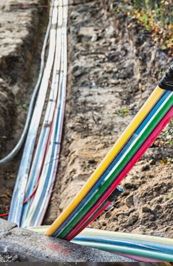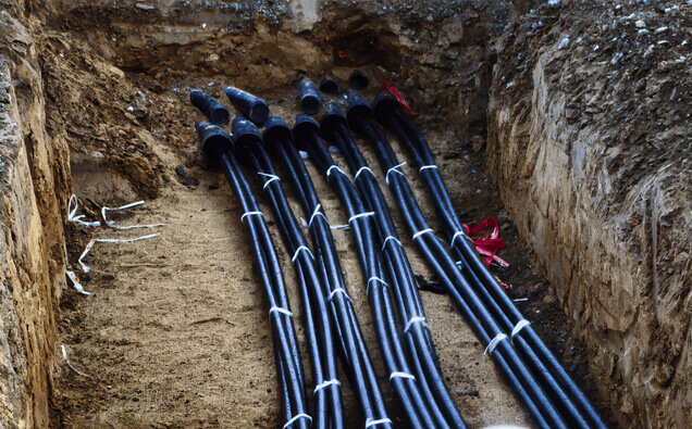 Expert installation of mains cabling from network pillars to metre boxes with correct segregation, depth and protection in full compliance with distributor regulations.